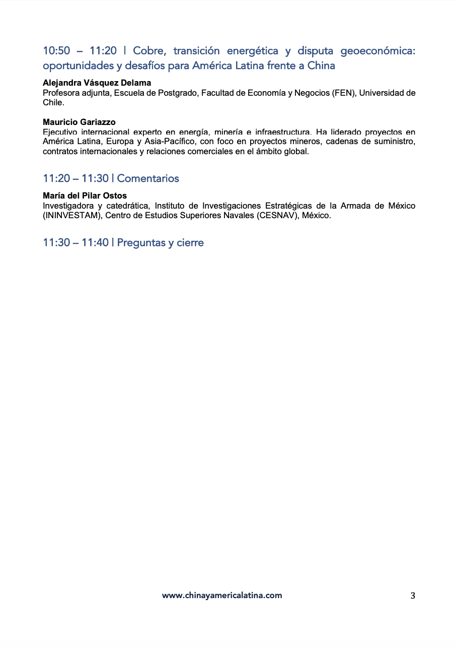 10:10 – 10:30 | Transición energética y minerales críticos: la presencia de China en América Latina